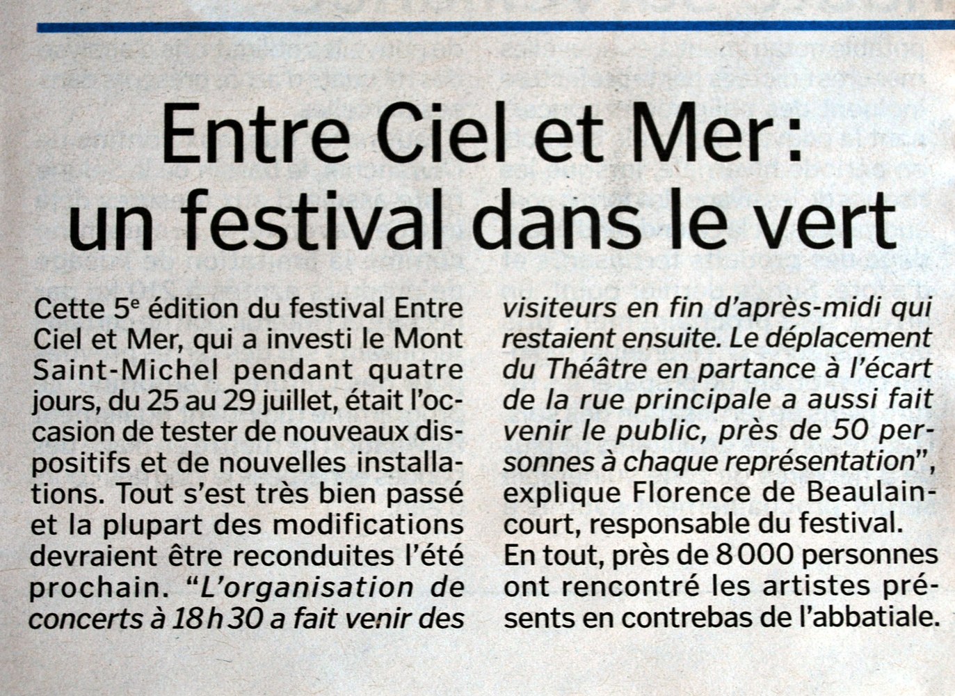 Revue de presse 2012 — Festival entre Ciel et mer